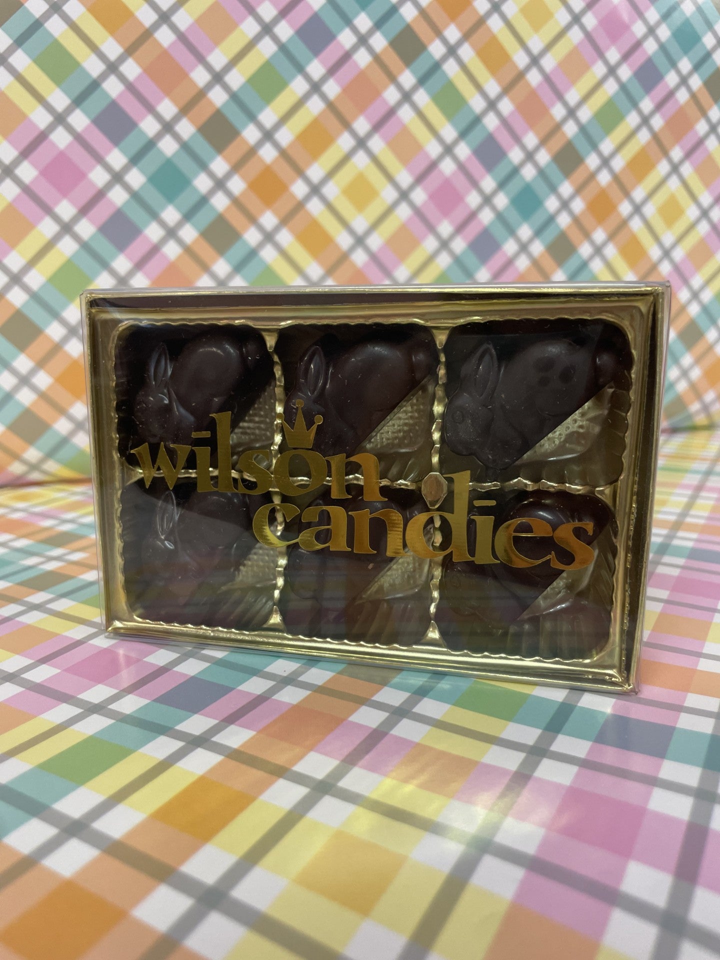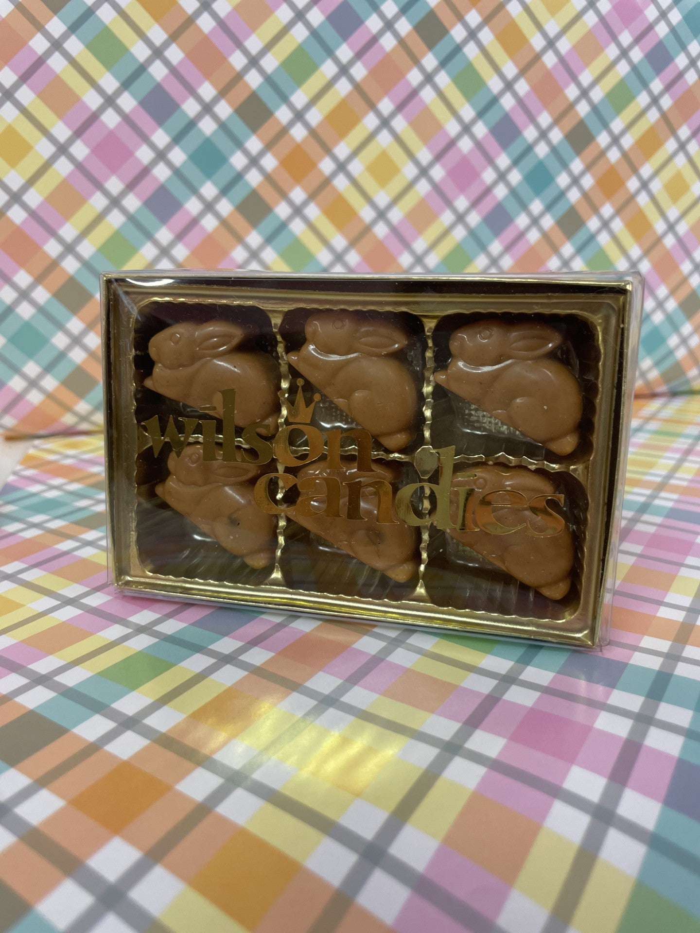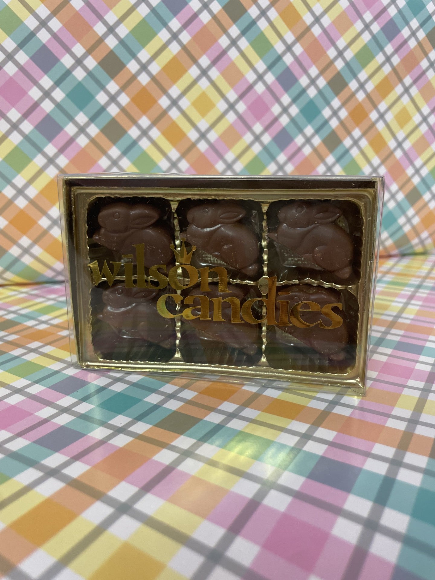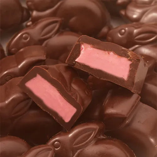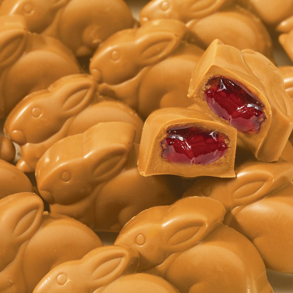 Choose from milk chocolate caramel filled, peanut butter and jelly filled, or dark chocolate raspberry filled bunnies.