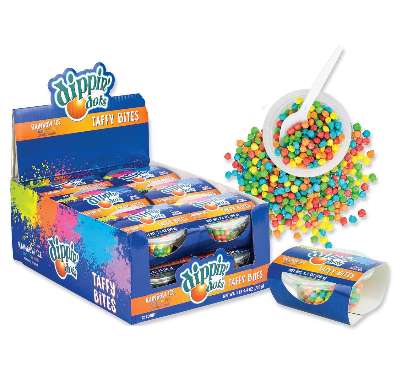 Delight your taste buds with the fun and flavorful Dippin' Dots Taffy Bites Candy Cup. Each cup is filled with bite-sized pieces of taffy that capture the iconic taste of Dippin' Dots ice cream. Each piece offers a chewy, satisfying texture and comes in a variety of delicious flavors. The candy cups are designed to be convenient and portable, making them perfect for on-the-go snacking.