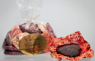 Smooth, creamy, solid chocolate leaves for fall! Milk chocolate leaves are wrapped in gold, red, orange, and green. Dark chocolate leaves are wrapped in bronze, maroon, brown, and rose gold. Either one is a gorgeous addition to cookie tables, Thanksgiving dinner, candy bowls, gift baskets, or just to have some delicious chocolate for a snack!